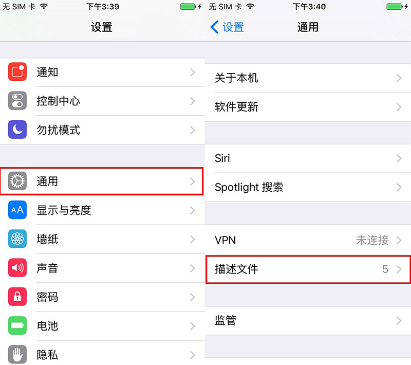 2、打开设置-通用-描述文件